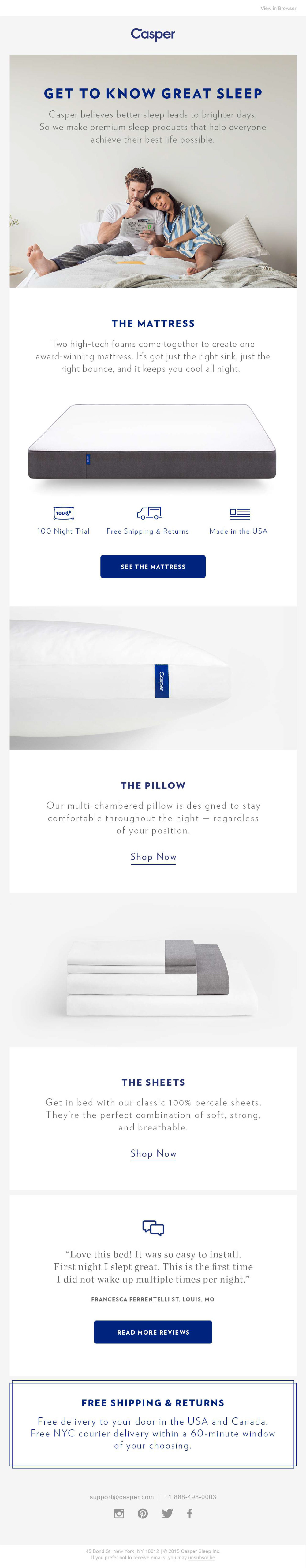 Casper Welcome Email