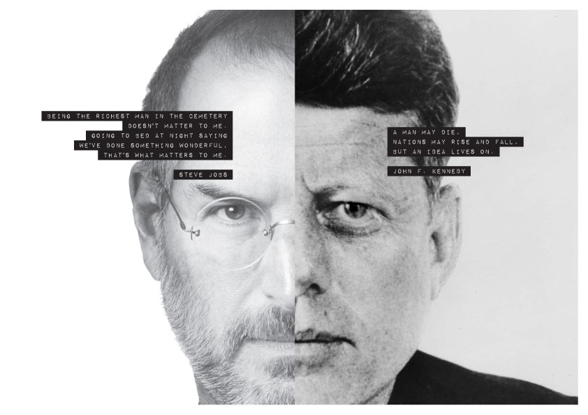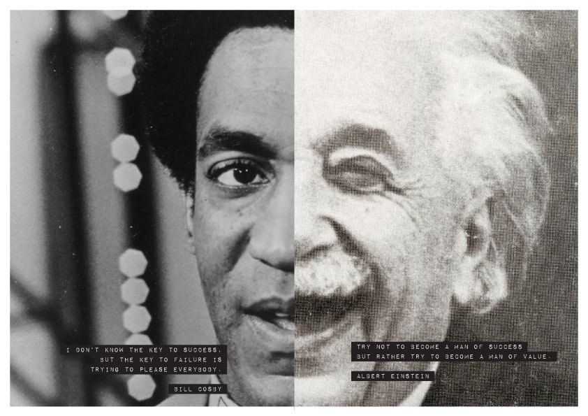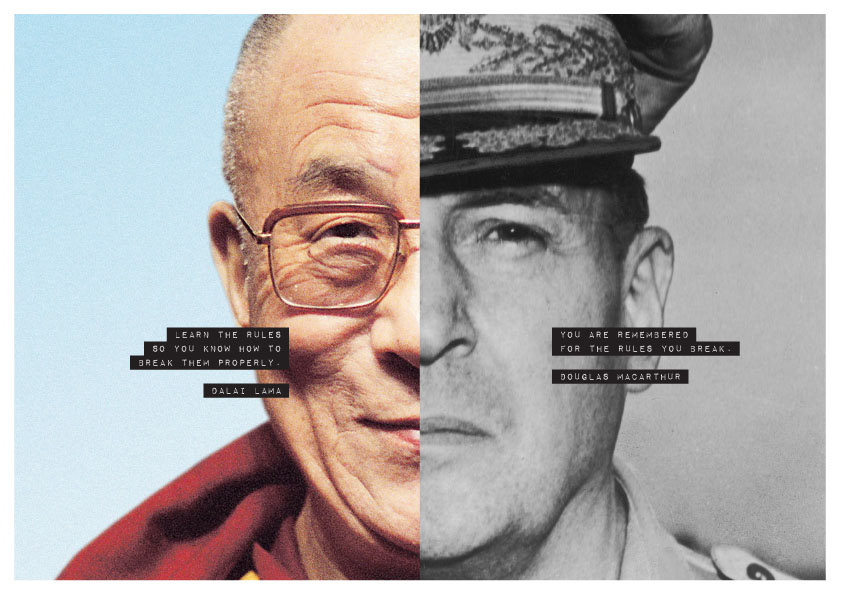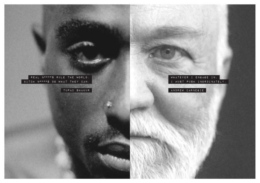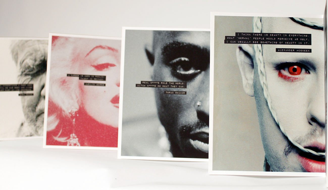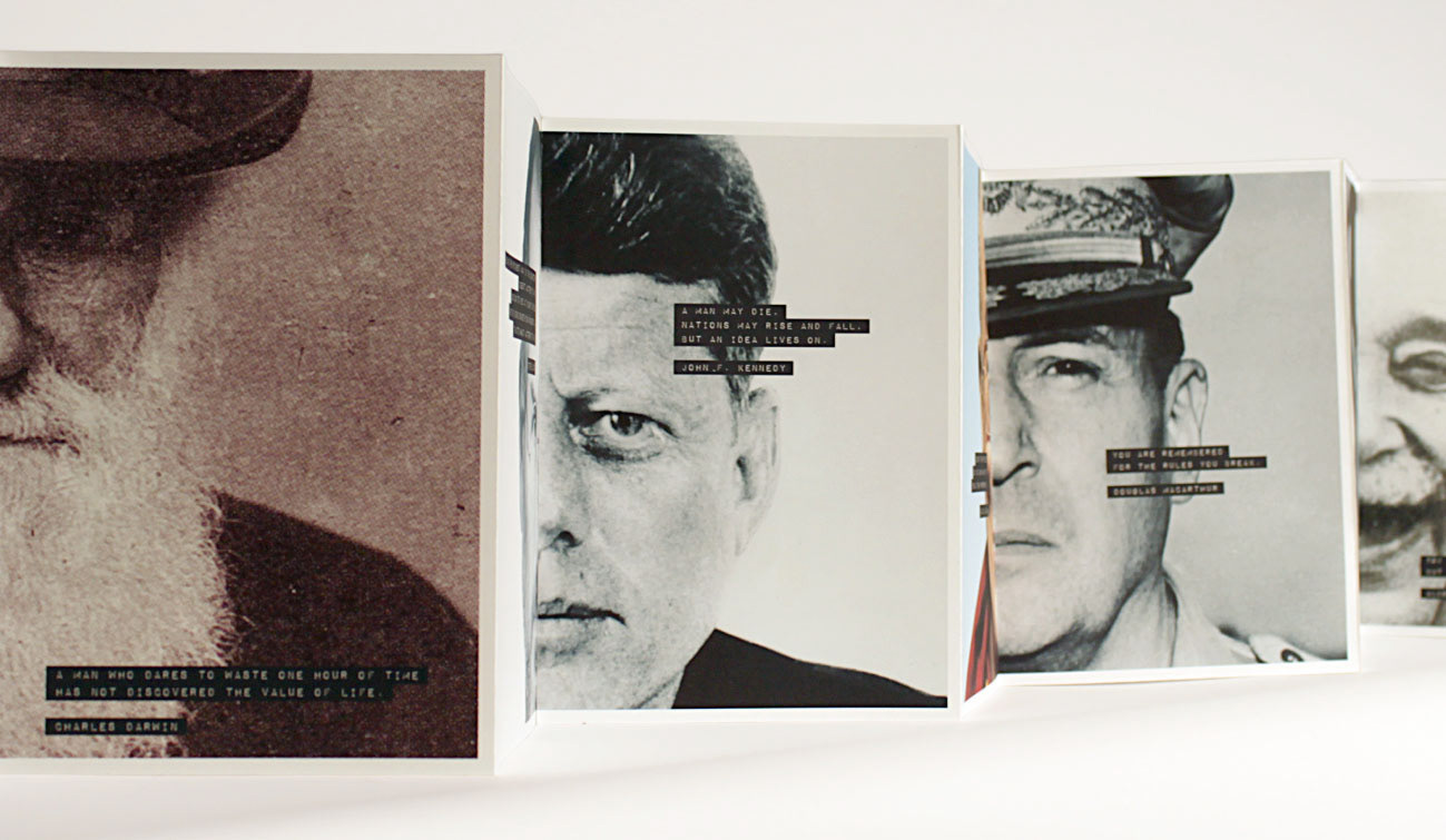 A book of quotes. Each spread reveals a common truth expressed by two successful individuals. It does not matter where you come from but how you apply yourself.