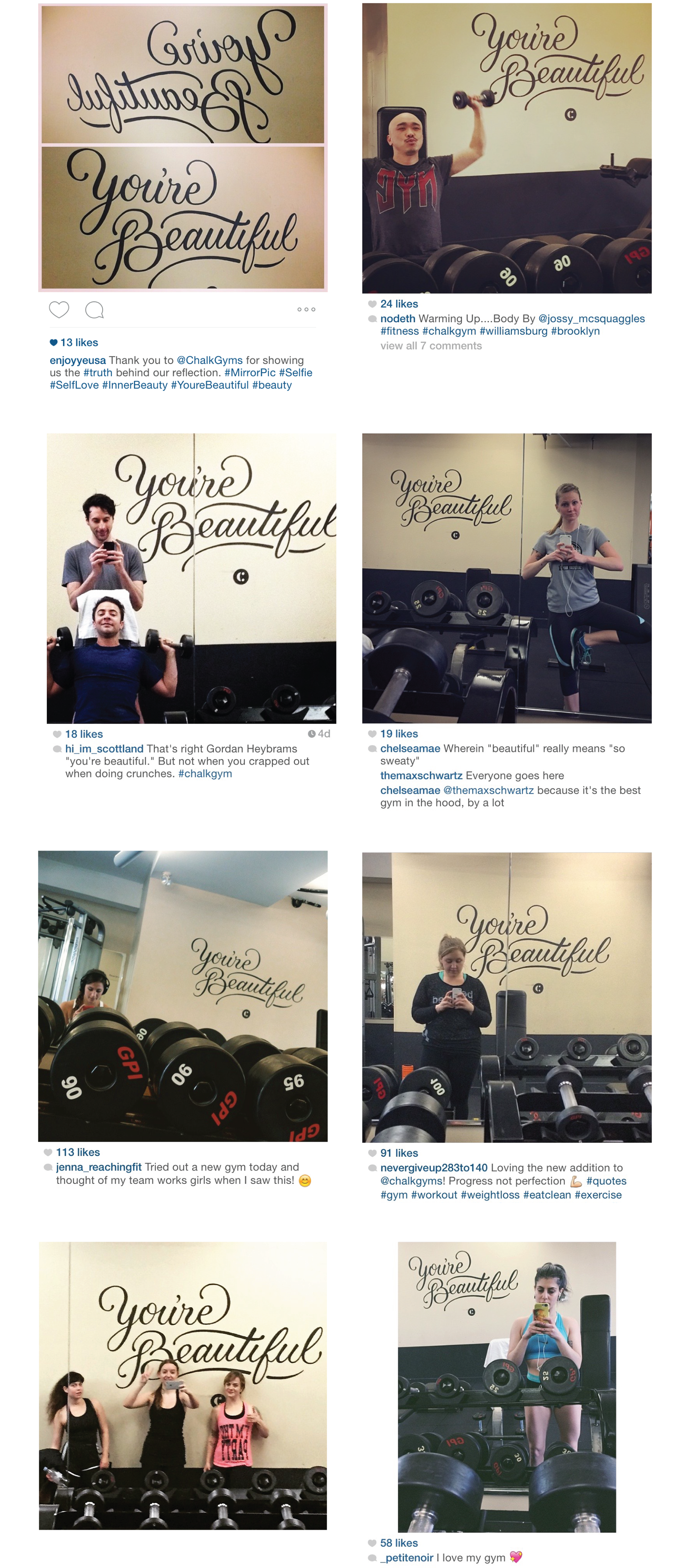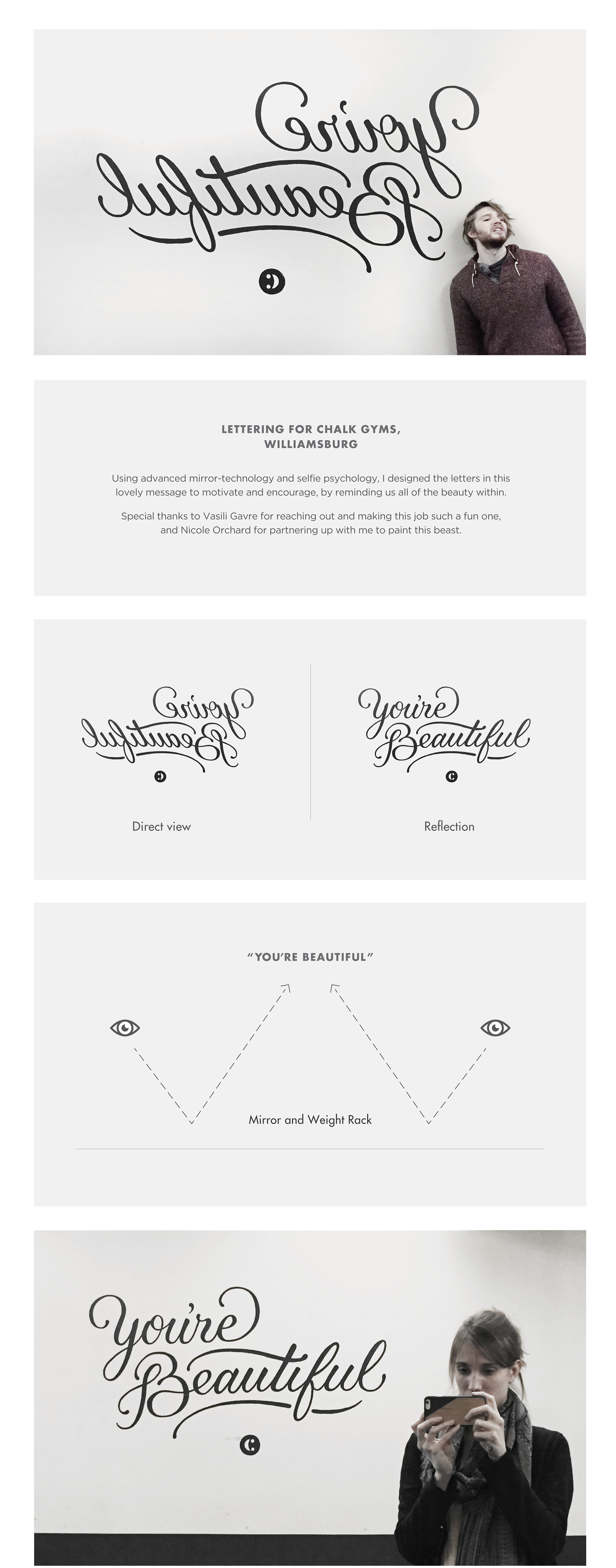 Hand lettering "You're Beautiful" and painting it backwards onto a wall.